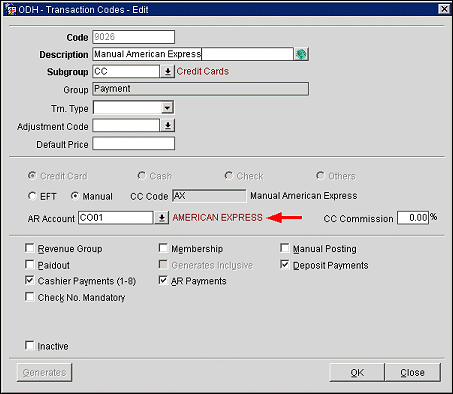 All payments posted against this transaction code will be displayed on the Credit Cards screen.