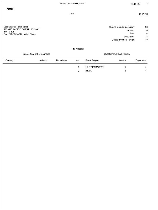 The Italian Country Statistics Report generates statistics that adhere to the legal reporting requirements for properties located in Italy. The contents and the display are dictated by the government. The Countries parameter must be set to Italy for the report to populate correctly. The report provides a statistical breakdown of reservations by either month or day. The breakdown is either by region for Italian guests, along with State and Country for all other guests. The monthly output displays the reservation statistics for those guests from Italy, and the daily output provides a statistical breakdown of all Italian reservations and of any foreign guest reservations. This report must be manually added to the Reports menu.