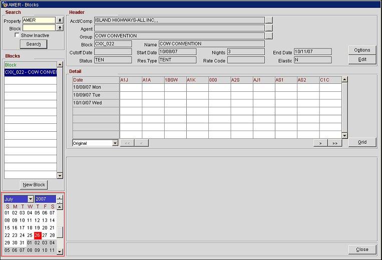 The Calendar area allows a user to select a date to work with a rate. To change the date, select the month and year, and click on the date. The information displayed in the Detail area changes based on the date selected.