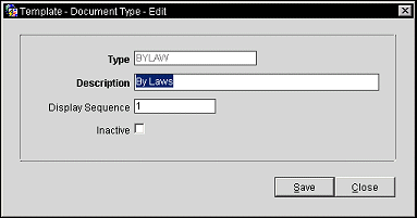 Inactive. Select the check box to inactivate the document type. When inactivated, the type will not be displayed, unless specified.